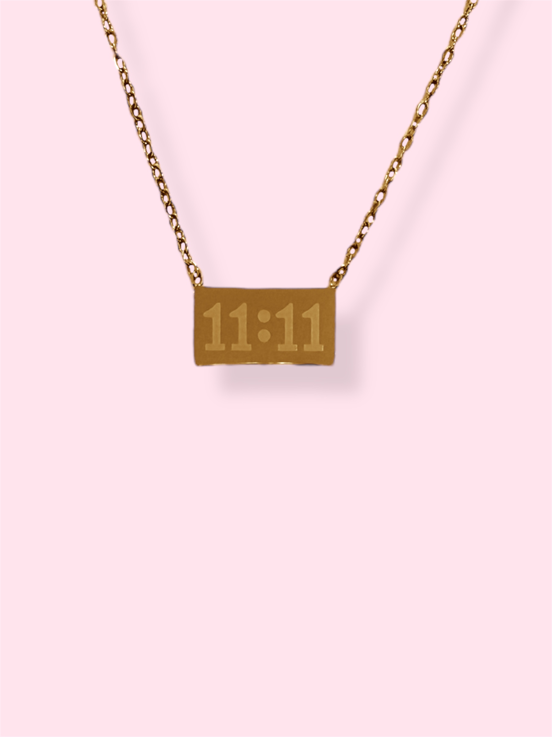 Ένα κομμάτι με συμβολισμό ιδανικό για όσους αγαπούν τα κοσμήματα με νόημα. Το κολιέ διαθέτει τετράγωνο μεταγιόν χαραγμένο με την ώρα 11:11 τον απόλυτο αγγελικό αριθμό που συνδέεται με τύχη, πνευματική αφύπνιση και θετική ενέργεια.