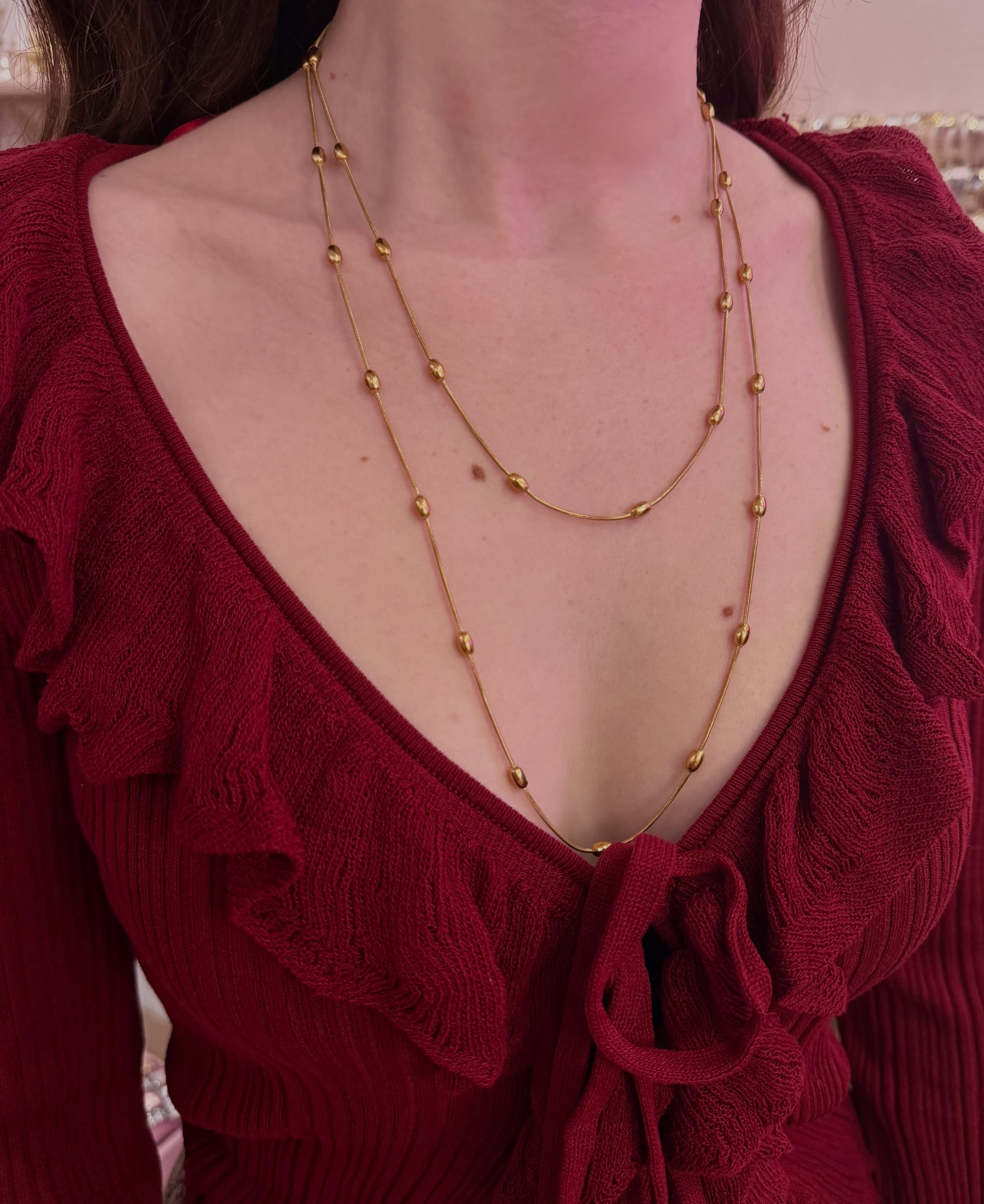 Ένα Κολιε κύκλος σε μεγάλο μήκος για να μπορείς να το φορέσεις όπως θέλεις ,μπορεί να τυλιχτεί 2 με 3 φορές γύρο από το λαιμό και να κάνει ένα Κολιε να ταιριάζει με όλα!