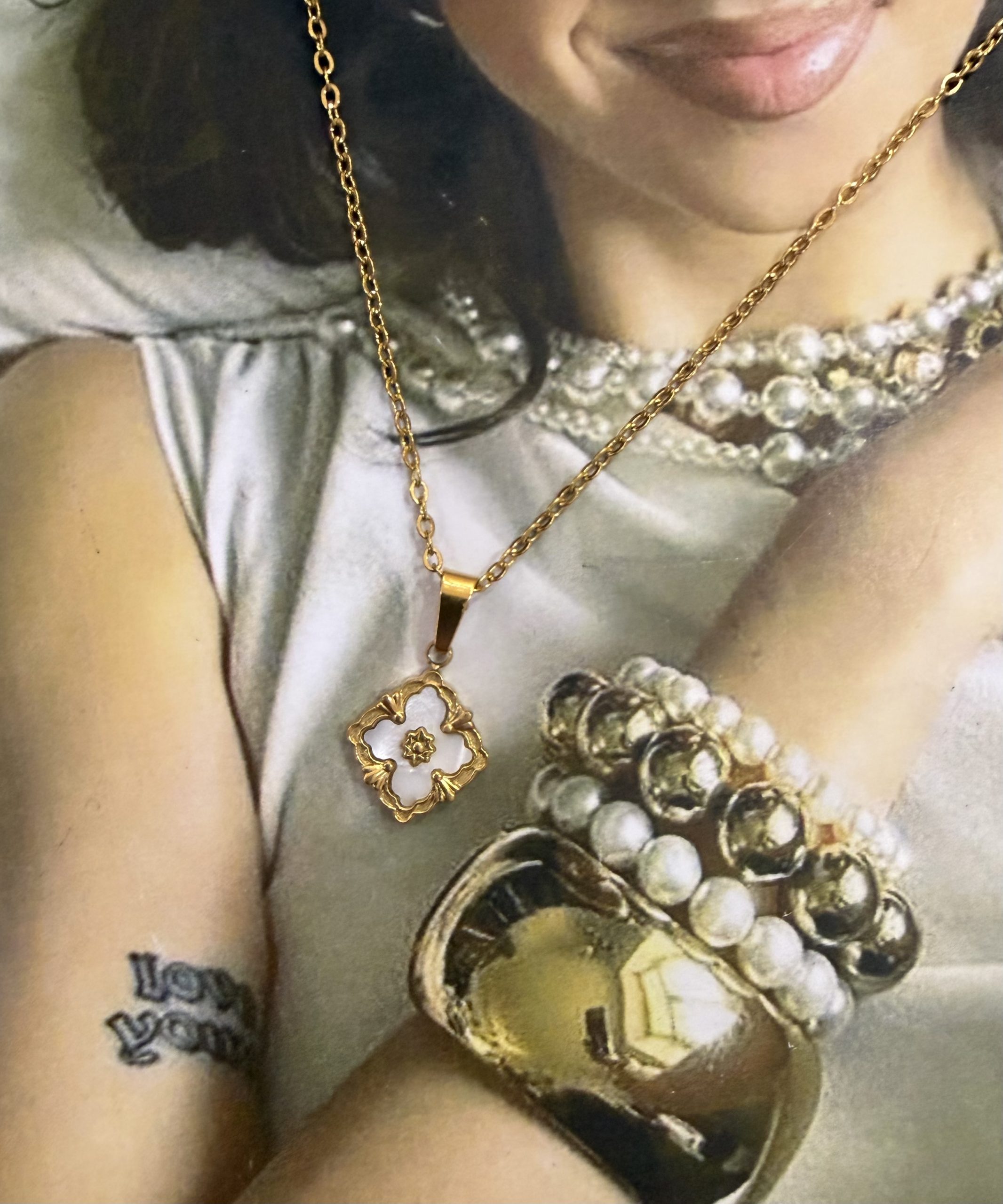 Κολιέ με λεπτή αλυσίδα και κρεμαστό στοιχείο. Ένα διακριτικό, ρομαντικό κόσμημα που αναδεικνύει τη θηλυκότητα με λεπτομέρεια και στυλ.