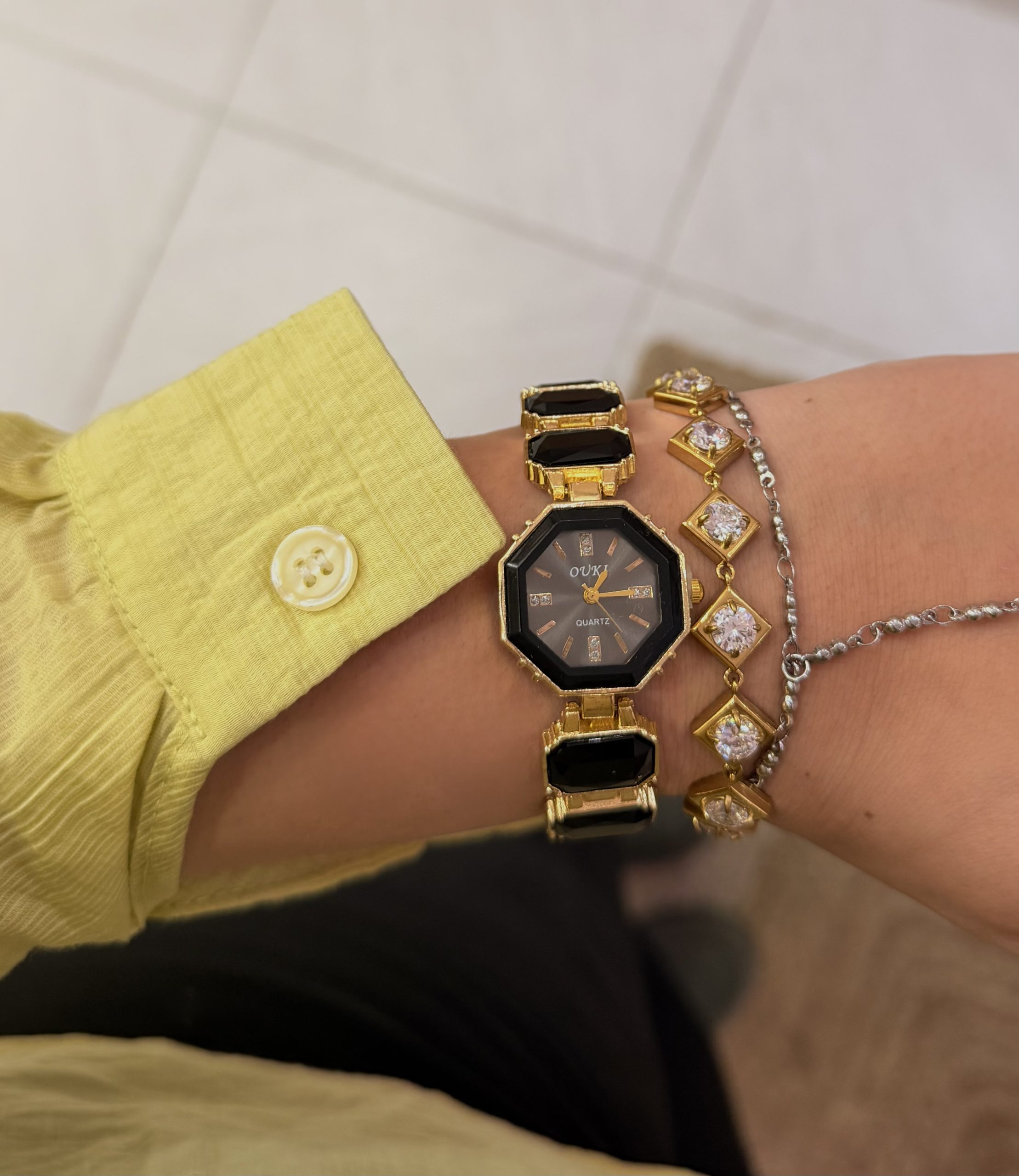 Κράμα χαλκού και ψευδαργύρου, με χρυσή όψη και εξαιρετική αντοχή. Είναι ιδανικό για statement κοσμήματα. Μπορεί να οξειδώνεται με τον καιρό, κάτι που μπορεί να προληφθεί με σωστή φροντίδα και αποθήκευση.