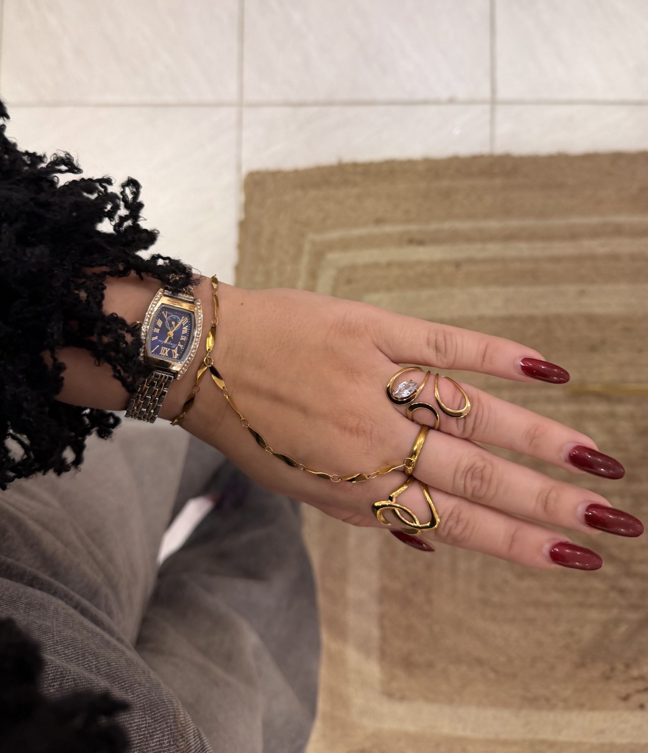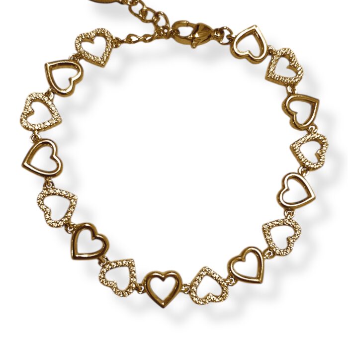 Κράμα χαλκού και ψευδαργύρου, με χρυσή όψη και εξαιρετική αντοχή. Είναι ιδανικό για statement κοσμήματα. Μπορεί να οξειδώνεται με τον καιρό, κάτι που μπορεί να προληφθεί με σωστή φροντίδα και αποθήκευση.