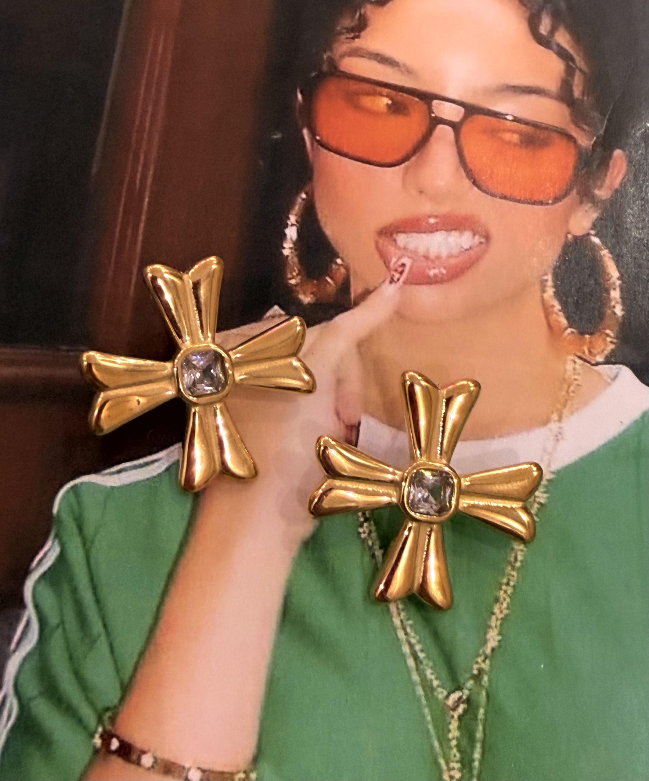 Τα επίχρυσα κοσμήματά μας είναι κατασκευασμένα με βάση από ανοξείδωτο ατσάλι ή ορείχαλκο, με επίστρωση χρυσού 18Κ ή 24Κ. Για μεγαλύτερη διάρκεια, συνιστάται αποφυγή άμεσης επαφής με νερό, αρώματα ή καλλυντικά.*Το επόμενο καλύτερο υλικο μετα το ατσάλι!