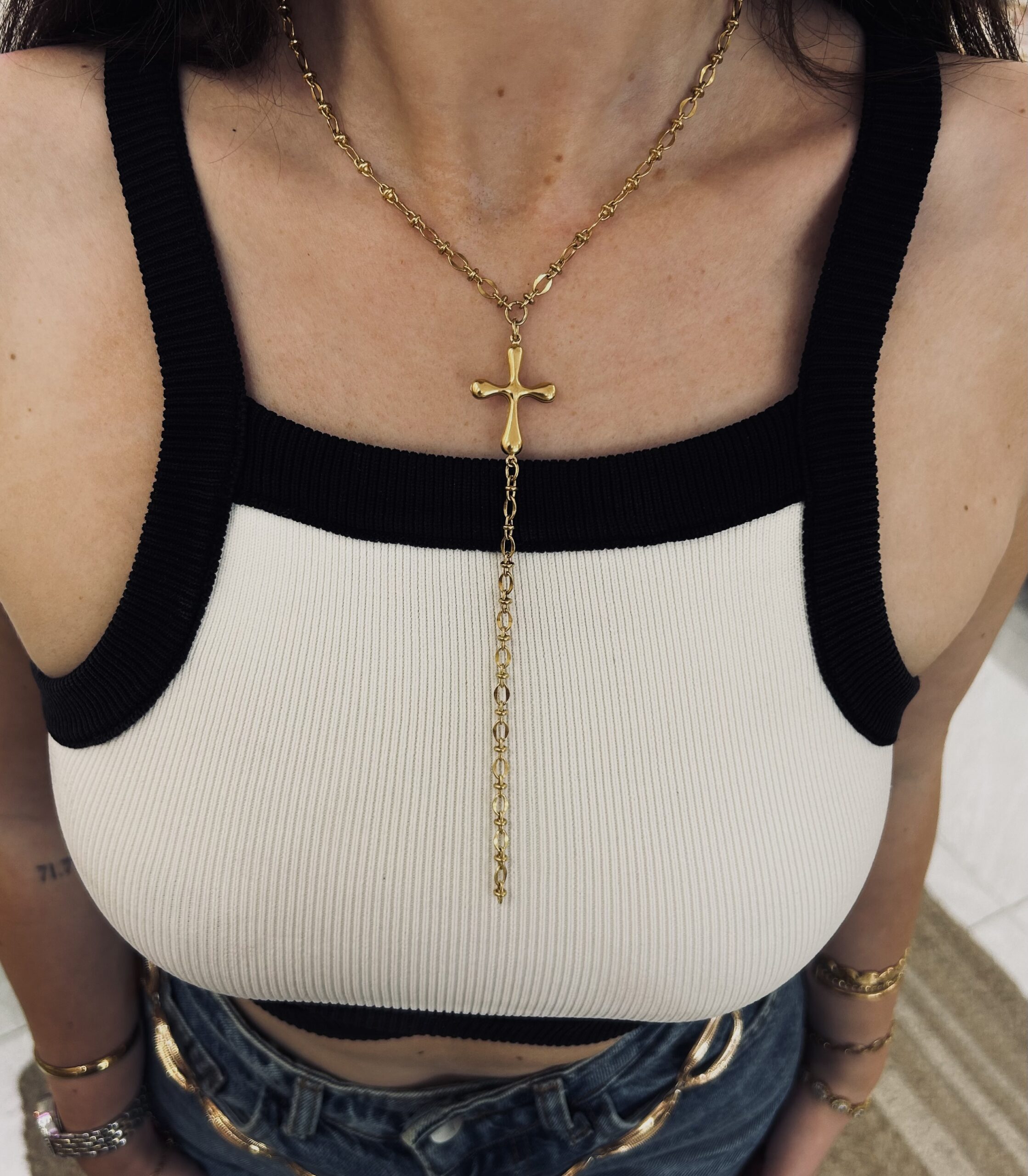 Κομψό κολιέ σε στυλ tie από ατσάλι , με bubble σταυρό στο κέντρο και ιδιαίτερη αλυσίδα που προσθέτει χαρακτήρα και στυλ. Ένα κόσμημα που ξεχωρίζει σίγουρα!