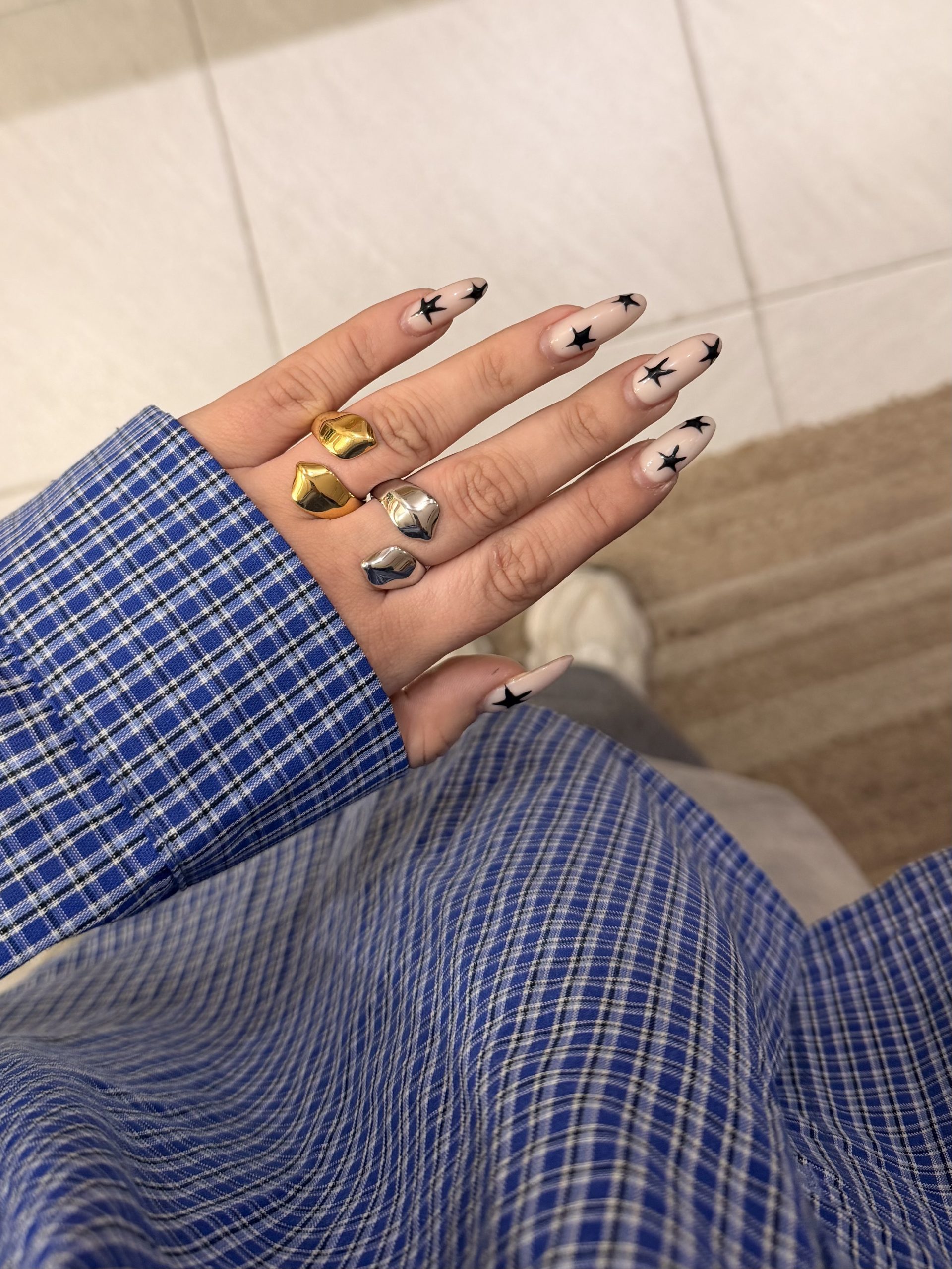 Δαχτυλίδι κατασκευασμένο με έμφαση στη λεπτομέρεια και τη διαχρονική αισθητική. Ο σχεδιασμός του επιτρέπει τη χρήση είτε ως μεμονωμένο κόσμημα για διακριτική και κομψή εμφάνιση, είτε σε συνδυασμό με άλλα δαχτυλίδια για πιο έντονο και σύγχρονο στυλ.