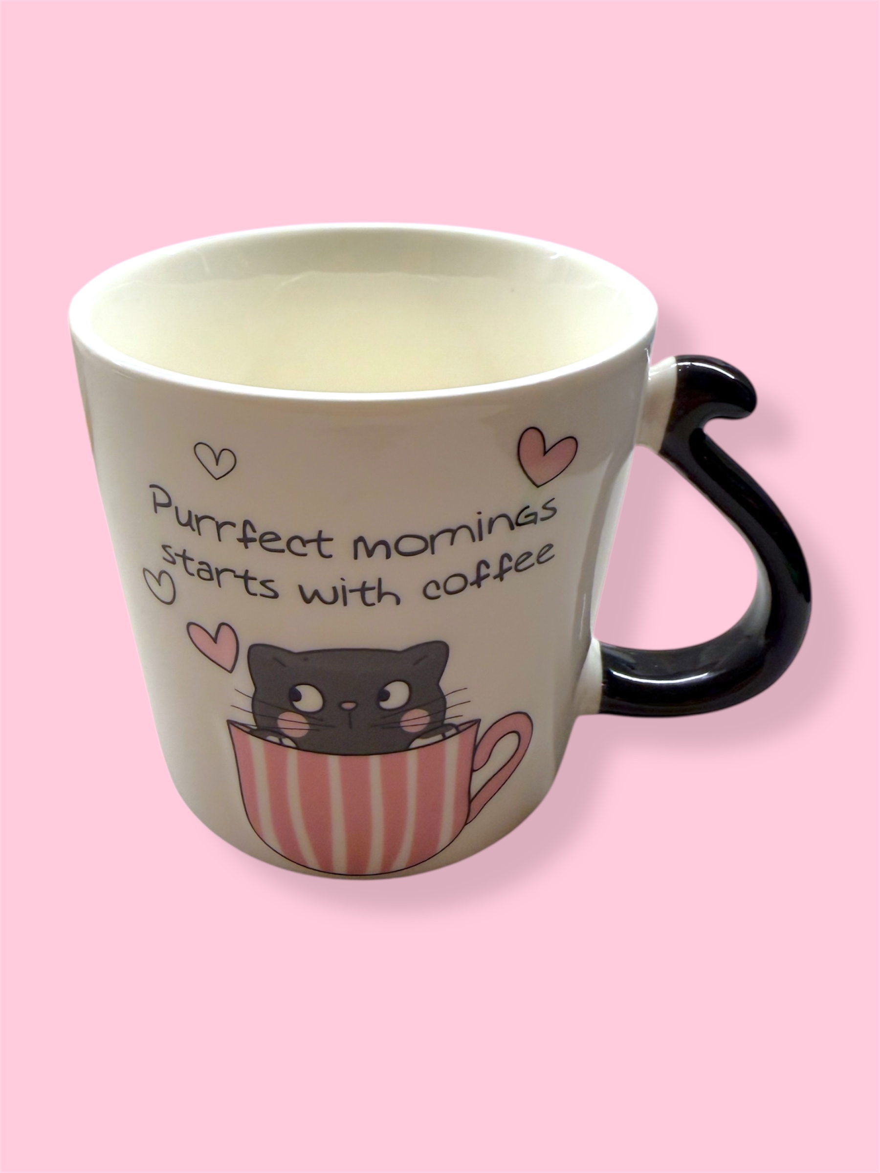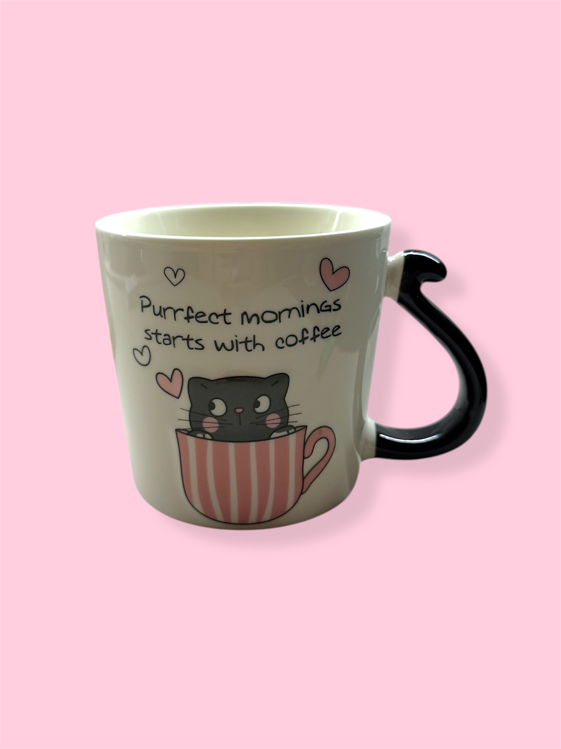 Χαριτωμένη κεραμική κούπα 400 ml με σχέδιο γατάκι, ιδανική για καφέ, τσάι ή ζεστή σοκολάτα.Το παιχνιδιάρικο και το γλυκό μήνυμα την κάνουν τέλεια επιλογή για καθημερινή χρήση αλλά και ως δώρο.