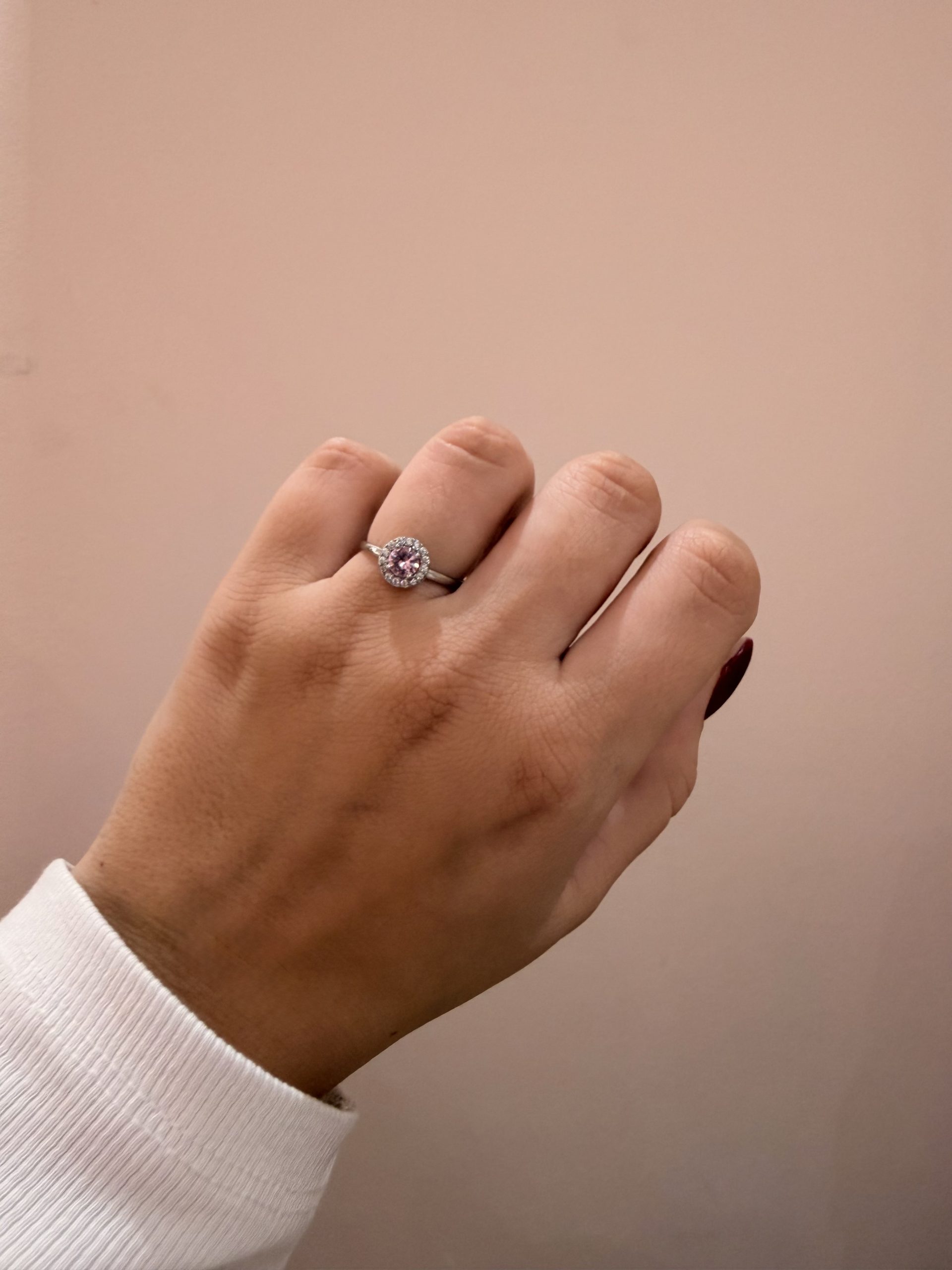Ένα υπέροχο μονόπετρο δαχτυλίδι που αποπνέει ρομαντισμό και διακριτική πολυτέλεια. Στο κέντρο δεσπόζει μία λαμπερή ροζ πέτρα, πλαισιωμένη περιμετρικά από μικρά στρας που ενισχύουν τη λάμψη και χαρίζουν εντυπωσιακό αποτέλεσμα.Είναι one size με πρακτική αυξομείωση στο πίσω μέρος, ώστε να προσαρμόζεται άνετα σε πιο μικρά αλλά και μεγαλύτερα μεγέθη δαχτύλων.
