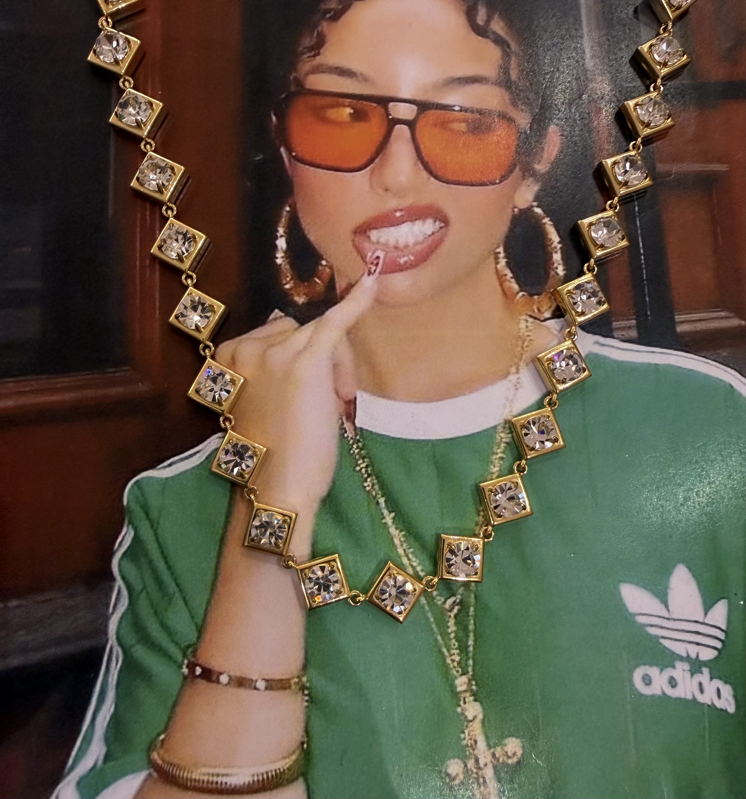 Κράμα χαλκού και ψευδαργύρου, με χρυσή όψη και εξαιρετική αντοχή. Είναι ιδανικό για statement κοσμήματα. Μπορεί να οξειδώνεται με τον καιρό, κάτι που μπορεί να προληφθεί με σωστή φροντίδα και αποθήκευση.