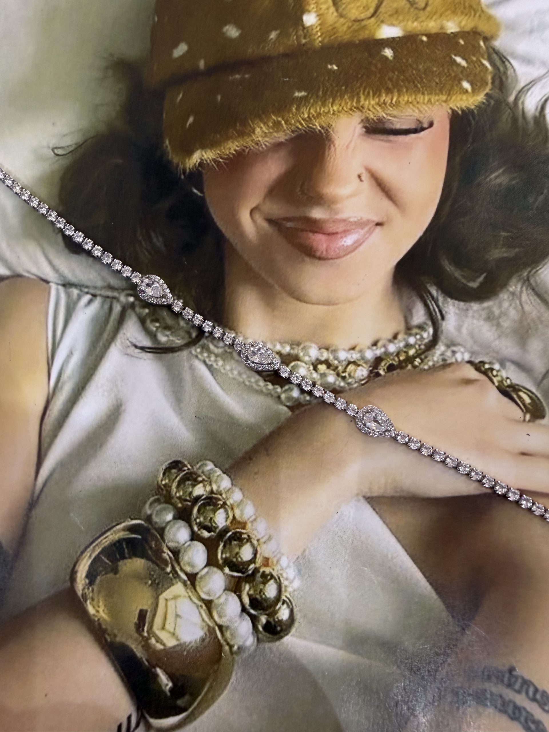 Ένα υπέροχο λεπτό βραχιόλι διακοσμημένο με στράς σε όλο το μήκος του, χαρίζει κομψή και διακριτική λάμψη σε κάθε σας εμφάνιση. Ιδανικό για να προσθέσετε μια λάμψη σε πιο ιδιαίτερες στιγμές.