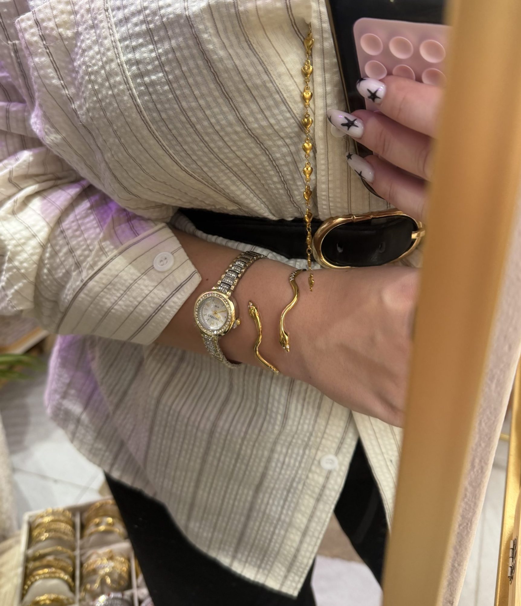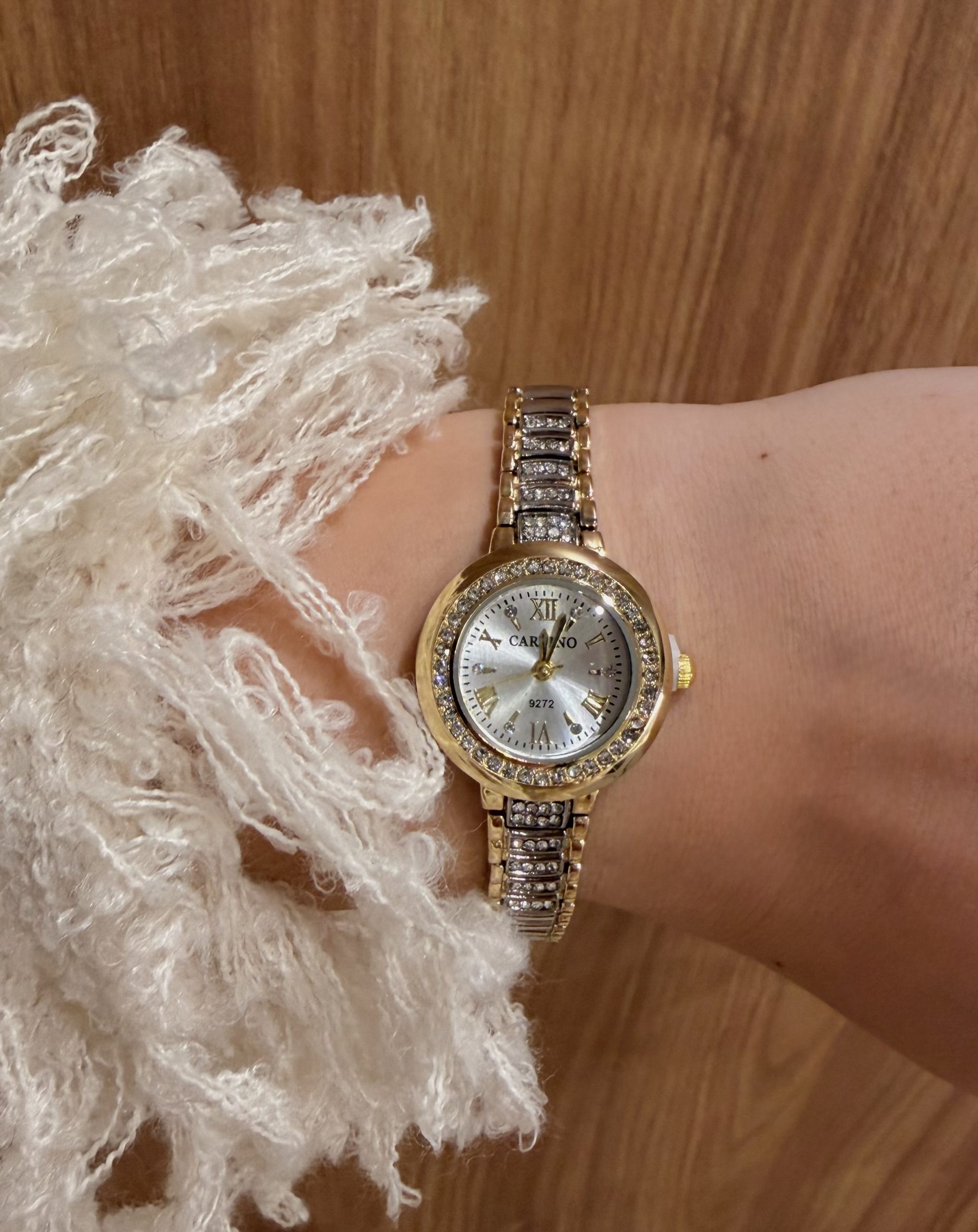 Ένα εντυπωσιακό ρολόι που συνδυάζει χρυσό και ασημί με ιδιαίτερο και λεπτο λουράκι.Το καντράν του είναι στολισμένο με μοναδικά στρασάκια. Φούλ λουξ και αριστοκρατικό, ιδανικό για όσους θέλουν να προσθέσουν μια δόση κομψότητας και λάμψης σε κάθε εμφάνιση.