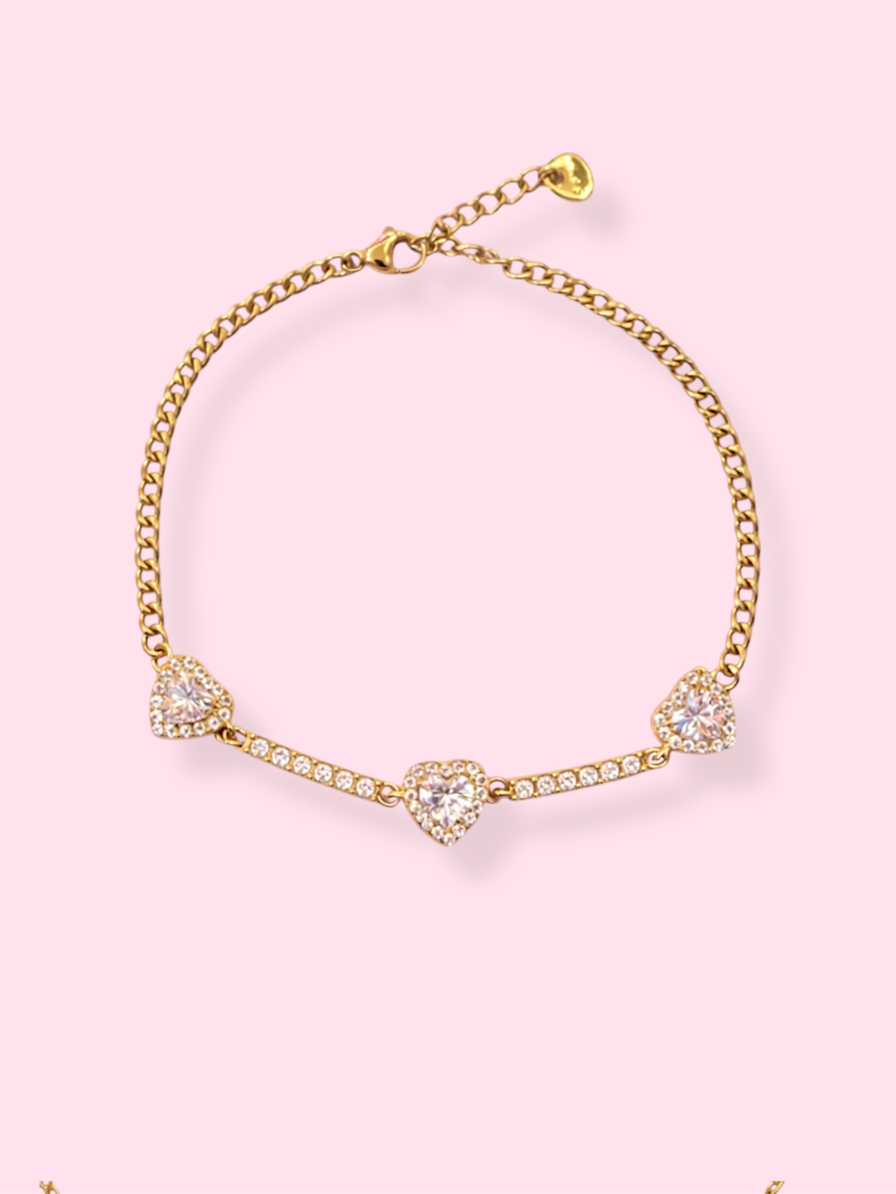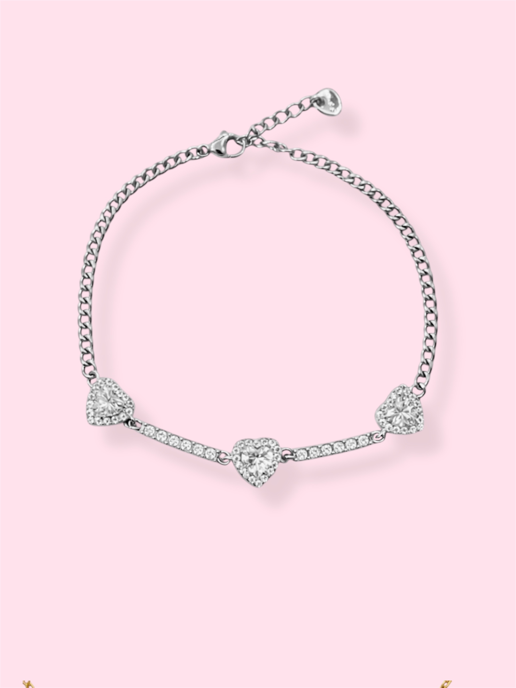Ένα εντυπωσιακό βραχιόλι τύπου ριβιέρα, διακοσμημένο με καρδιές. Ένα statement κόσμημα που συνδυάζει κομψότητα, λάμψη και μοναδικότητα, ιδανικό για κάθε ιδιαίτερη εμφάνιση.