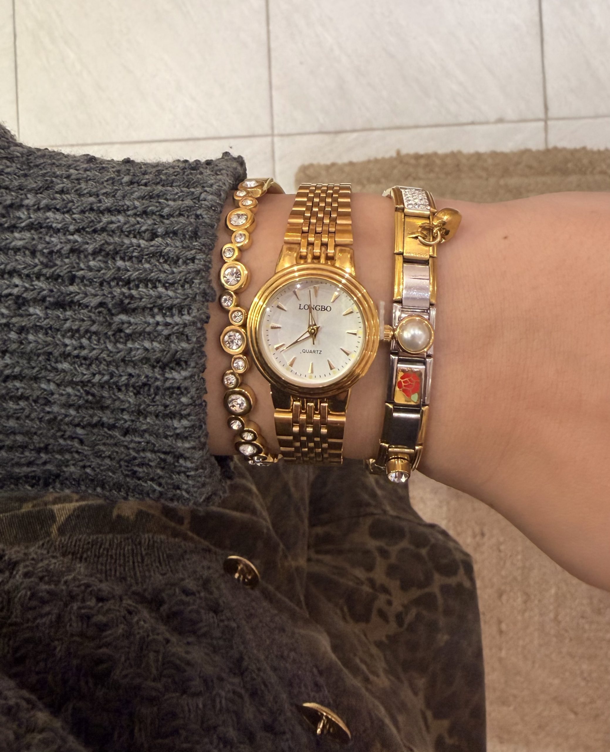 Κράμα χαλκού και ψευδαργύρου, με χρυσή όψη και εξαιρετική αντοχή. Είναι ιδανικό για statement κοσμήματα. Μπορεί να οξειδώνεται με τον καιρό, κάτι που μπορεί να προληφθεί με σωστή φροντίδα και αποθήκευση.
