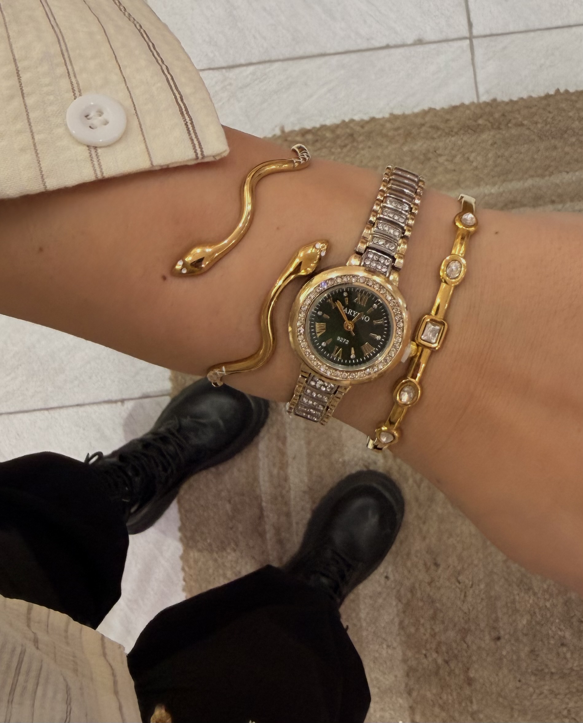 Ένα εντυπωσιακό ρολόι που συνδυάζει χρυσό και ασημί με ιδιαίτερο και λεπτο λουράκι.Το καντράν του είναι στολισμένο με μοναδικά στρασάκια. Φούλ λουξ και αριστοκρατικό, ιδανικό για όσους θέλουν να προσθέσουν μια δόση κομψότητας και λάμψης σε κάθε εμφάνιση.