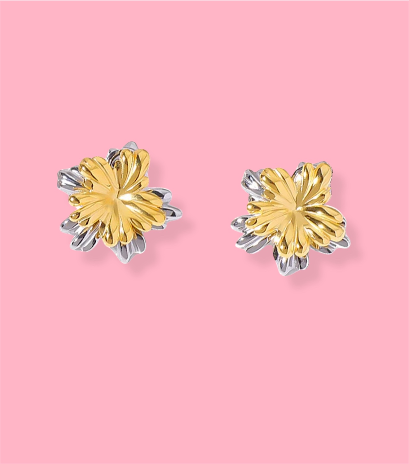Δώστε λάμψη στο στυλ σας με αυτά τα μικρά σκουλαρίκια σε σχήμα λουλουδιού. Η μοναδική μίξη χρυσού και ασημί δημιουργεί κομψό και φωτεινό αποτέλεσμα, ιδανικό για καθημερινή χρήση ή ειδικές περιστάσεις. Διακριτικά αλλά εντυπωσιακά, είναι το τέλειο αξεσουάρ για κάθε εμφάνιση.