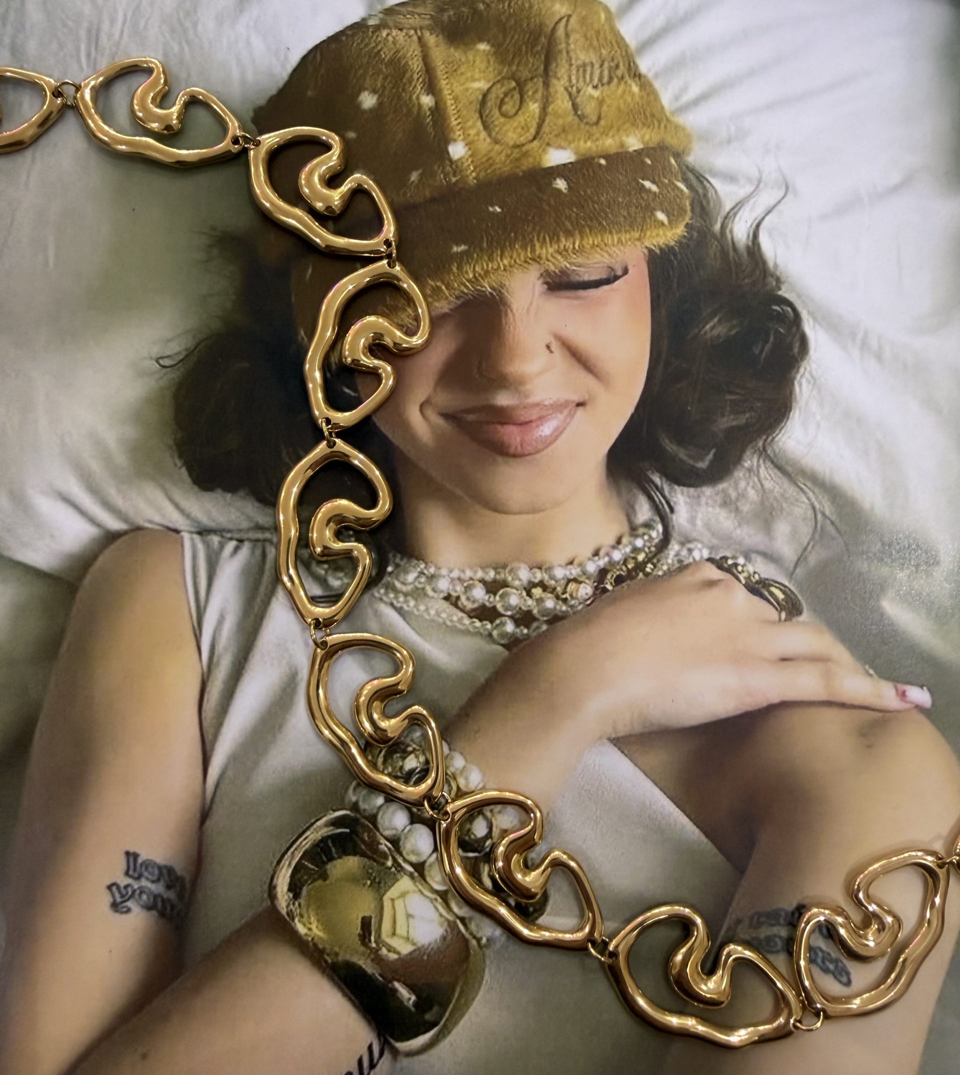 Κράμα χαλκού και ψευδαργύρου, με χρυσή όψη και εξαιρετική αντοχή. Είναι ιδανικό για statement κοσμήματα. Μπορεί να οξειδώνεται με τον καιρό, κάτι που μπορεί να προληφθεί με σωστή φροντίδα και αποθήκευση.