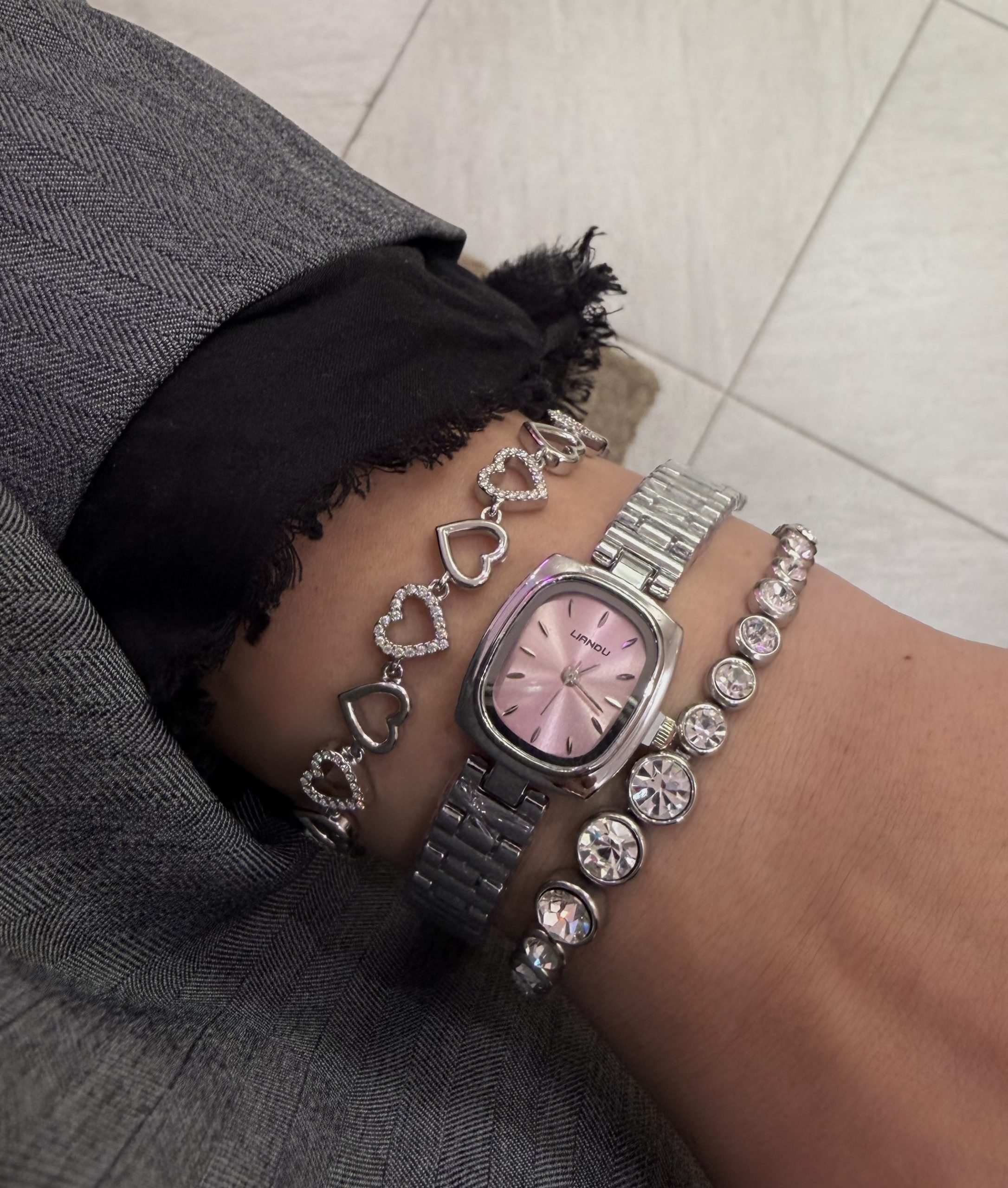 Ένα κομψό ρολόι , με λουράκι σε ασημί απόχρωση ιδιαίτερο σχέδιο.