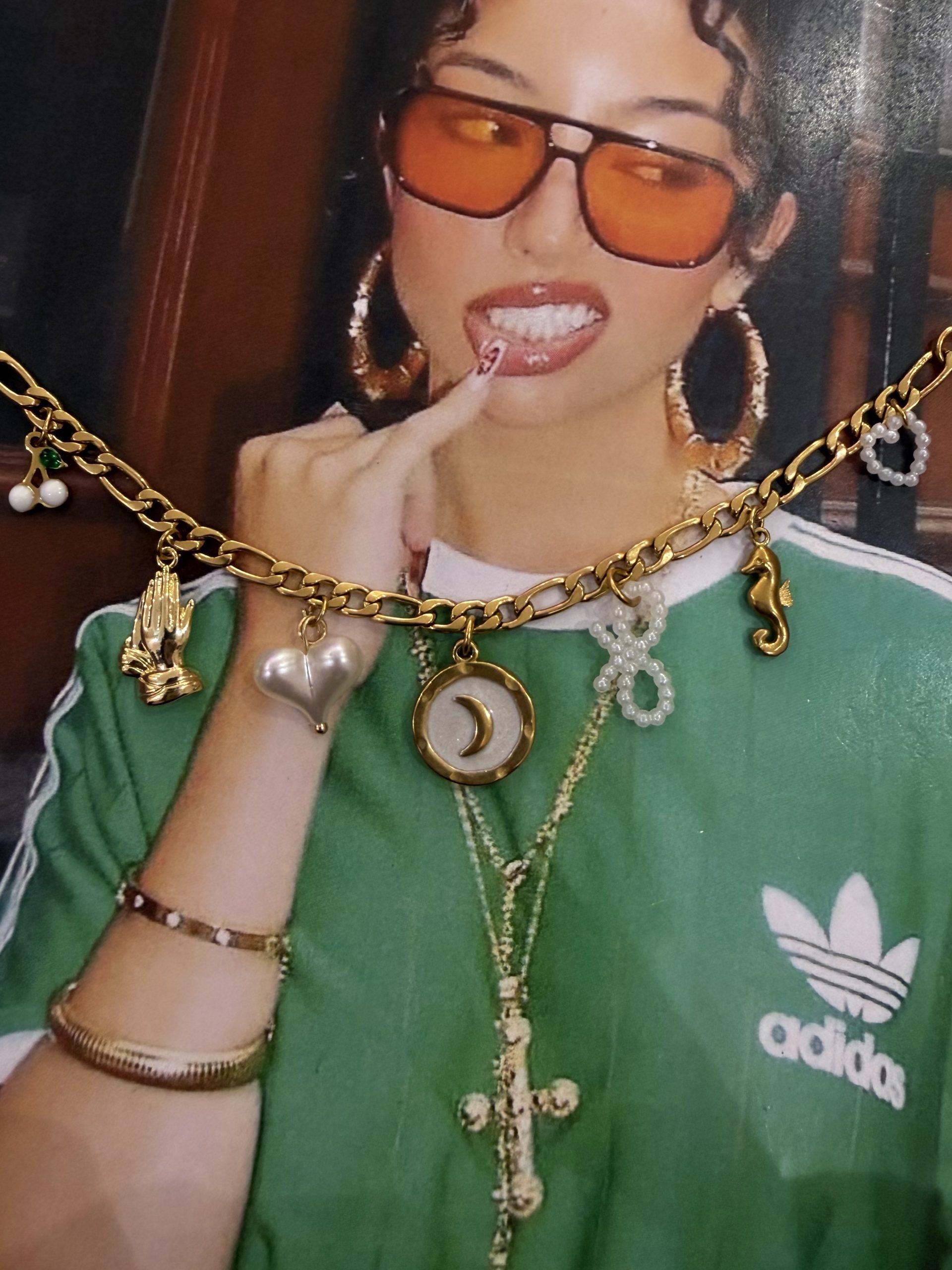 Κομψό βραχιόλι από ανοξείδωτο ατσάλι σε χρυσή απόχρωση, διακοσμημένο σε όλο του το μήκος με charms. Ένα ρομαντικό και ταυτόχρονα μοντέρνο κόσμημα . Ιδανικό για να φορεθεί μόνο του ή σε layering με άλλα βραχιόλια, προσθέτοντας μια ξεχωριστή πινελιά σε κάθε look.
