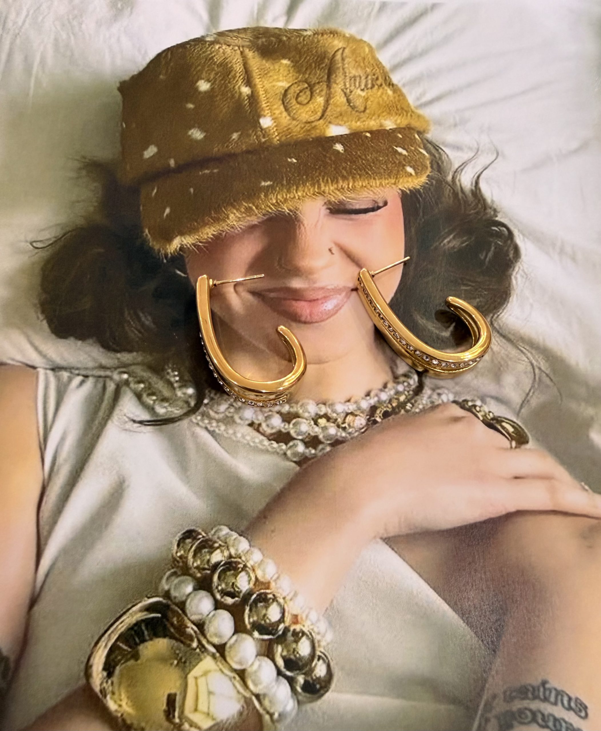 Κράμα χαλκού και ψευδαργύρου, με χρυσή όψη και εξαιρετική αντοχή. Είναι ιδανικό για statement κοσμήματα. Μπορεί να οξειδώνεται με τον καιρό, κάτι που μπορεί να προληφθεί με σωστή φροντίδα και αποθήκευση.
