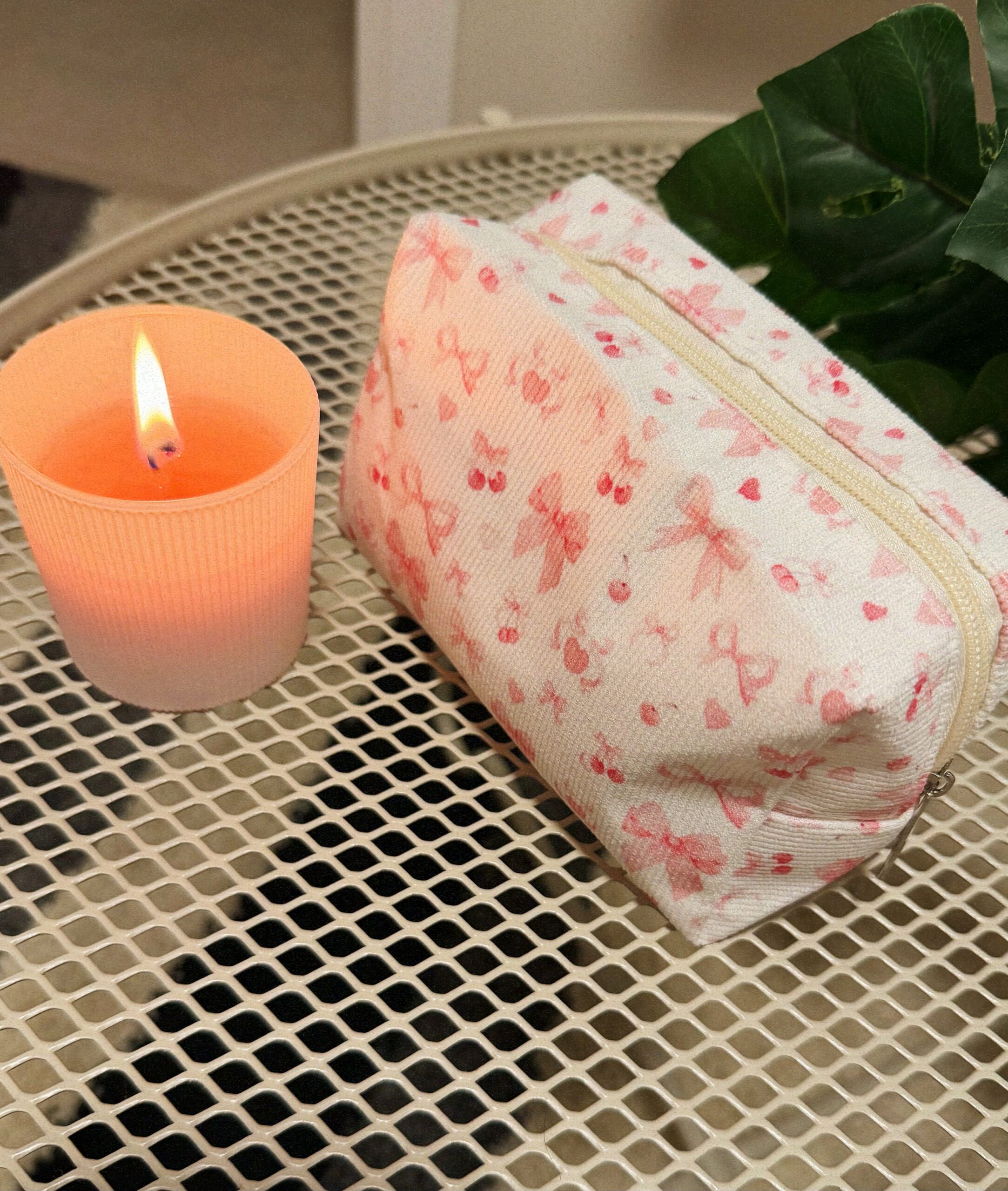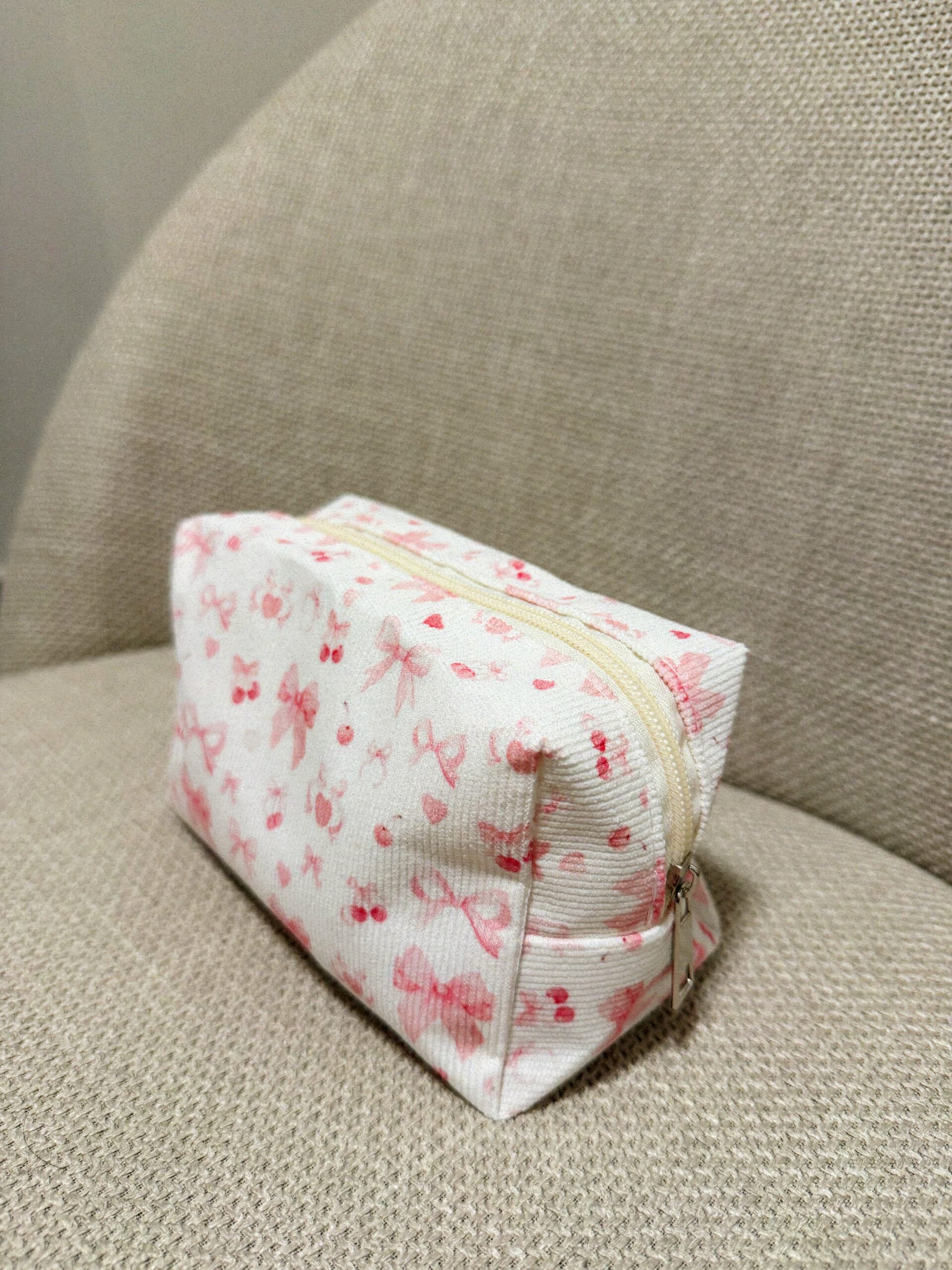 Ένα νεσεσέρ γεμάτο γοητεία και ρομαντισμό, με σχέδια από πολλά ροζ φιογκάκια, καρδιές και κερασάκια. Το νεσεσέρ αυτό εκπέμπει μια αίσθηση γλυκύτητας και παιχνιδιάρικης τρυφερότητας, με το ροζ χρώμα να κυριαρχεί και να προσδίδει μια αίσθηση ζεστασιάς. Οι καρδιές και τα φιογκάκια δίνουν έναν ρομαντικό και κομψό τόνο, ενώ τα κερασάκια προσθέτουν μια φρέσκια και γλυκιά νότα. Ιδανικό για να αποθηκεύσετε τα αγαπημένα σας καλλυντικά, αξεσουάρ ή μικροαντικείμενα με στυλ και πολλή χαρά.