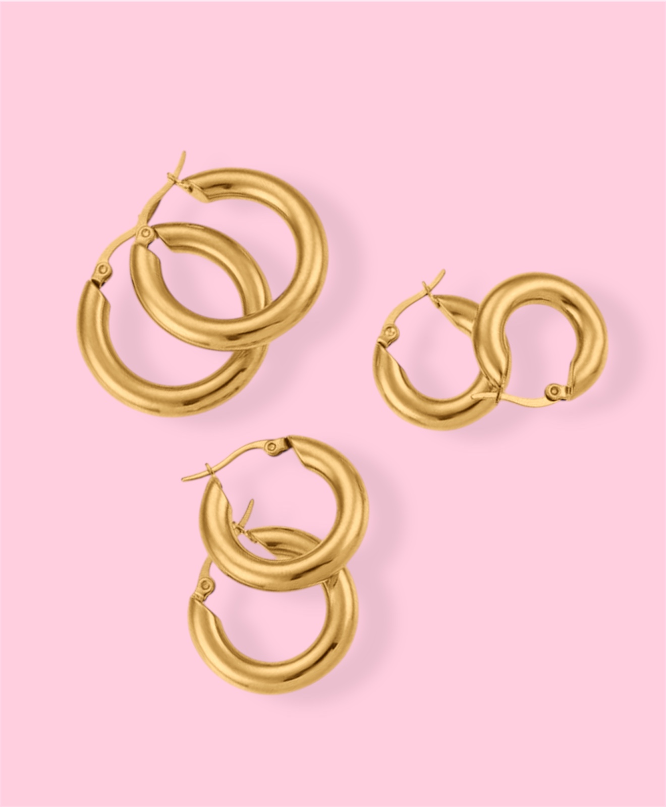 Με αυτό το σετ χρυσών κρίκων, σχεδιασμένο για πρακτική χρήση και εκλεπτυσμένο στυλ. Κάθε σετ περιλαμβάνει 3 ζευγάρια από το μεγαλύτερο έως το μικρότερο μέγεθος.