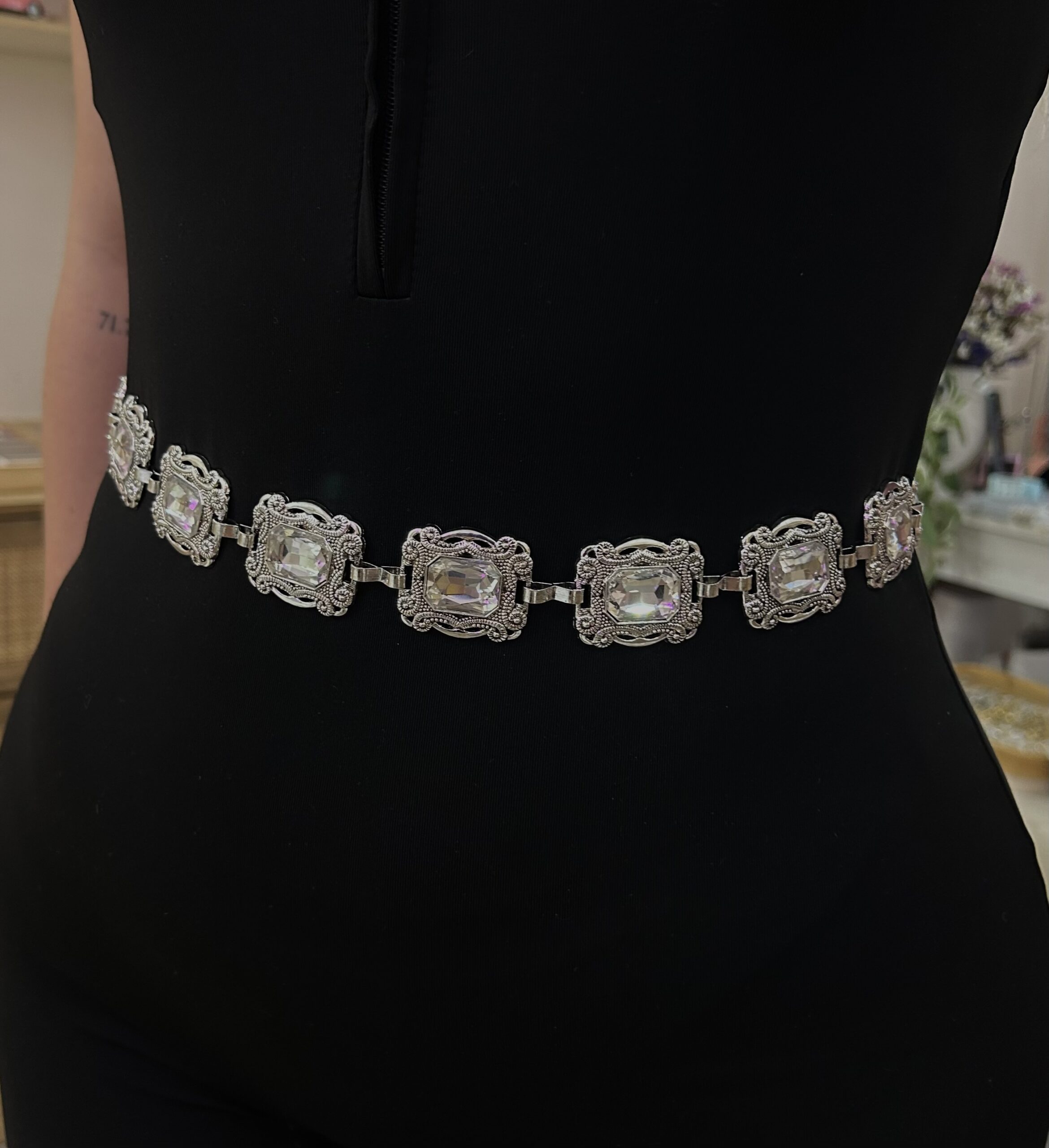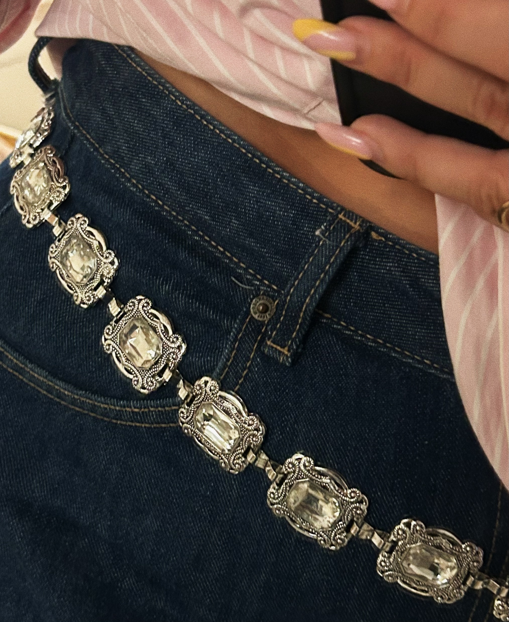 Εντυπωσιάστε με κάθε σας εμφάνιση με αυτή τη statement αλυσίδαζώνη σε vintage αισθητική. Μεγάλα, ορθογώνια στοιχεία σε αντικέ χρώμα ενώνονται σε ένα σχέδιο που συνδυάζει δυναμισμό και ρομαντισμό. Στο κέντρο κάθε κομματιού, ένας λευκός κρύσταλλος λάμπει διακριτικά, χαρίζοντας φως και πολυτέλεια σε κάθε σας βήμα.Ιδανική για να φορεθεί πάνω από φορέματα, oversized πουκάμισα ή ψηλόμεσα παντελόνια, αυτή η ζώνη προσθέτει vintage γοητεία και μια αίσθηση διαχρονικής κομψότητας σε κάθε look. Ένα αξεσουάρ που δεν περνά απαρατήρητο, για γυναίκες που τολμούν να ξεχωρίζουν με στυλ.