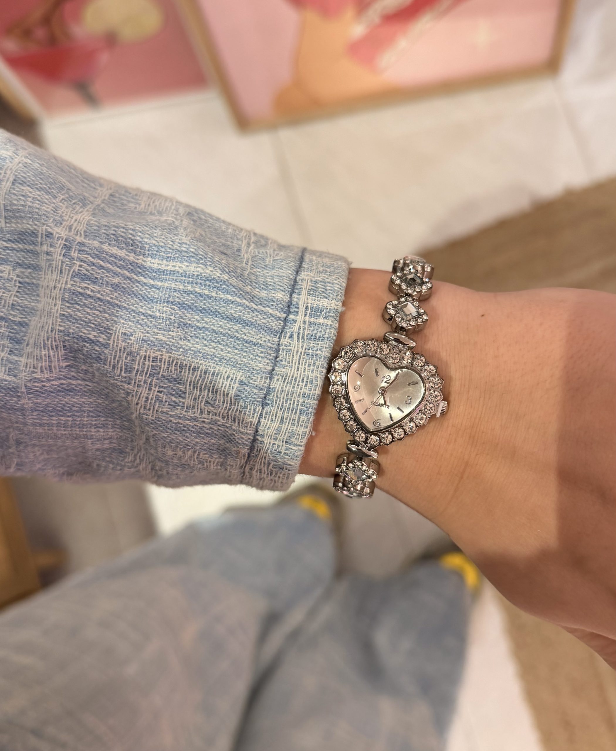 SILVER SPARKLING HEART WATCH