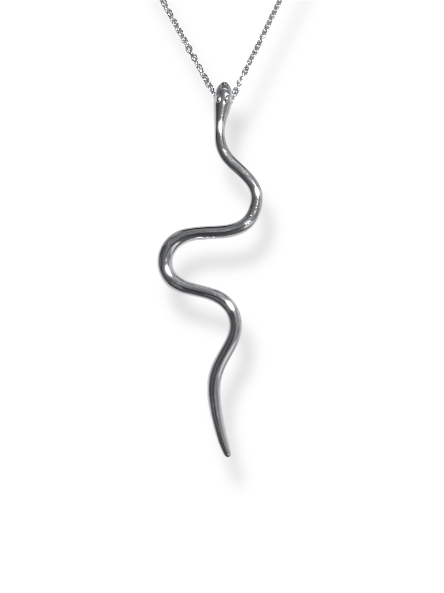 Ένα ιδιαίτερο μεταγιόν με λεπτη αλυσίδα και ένα εντυπωσιακό φίδι που κρέμεται στο κέντρο. Ιδανικό για τολμηρά, κομψά layerings ή μόνο του ως statement κόσμημα.