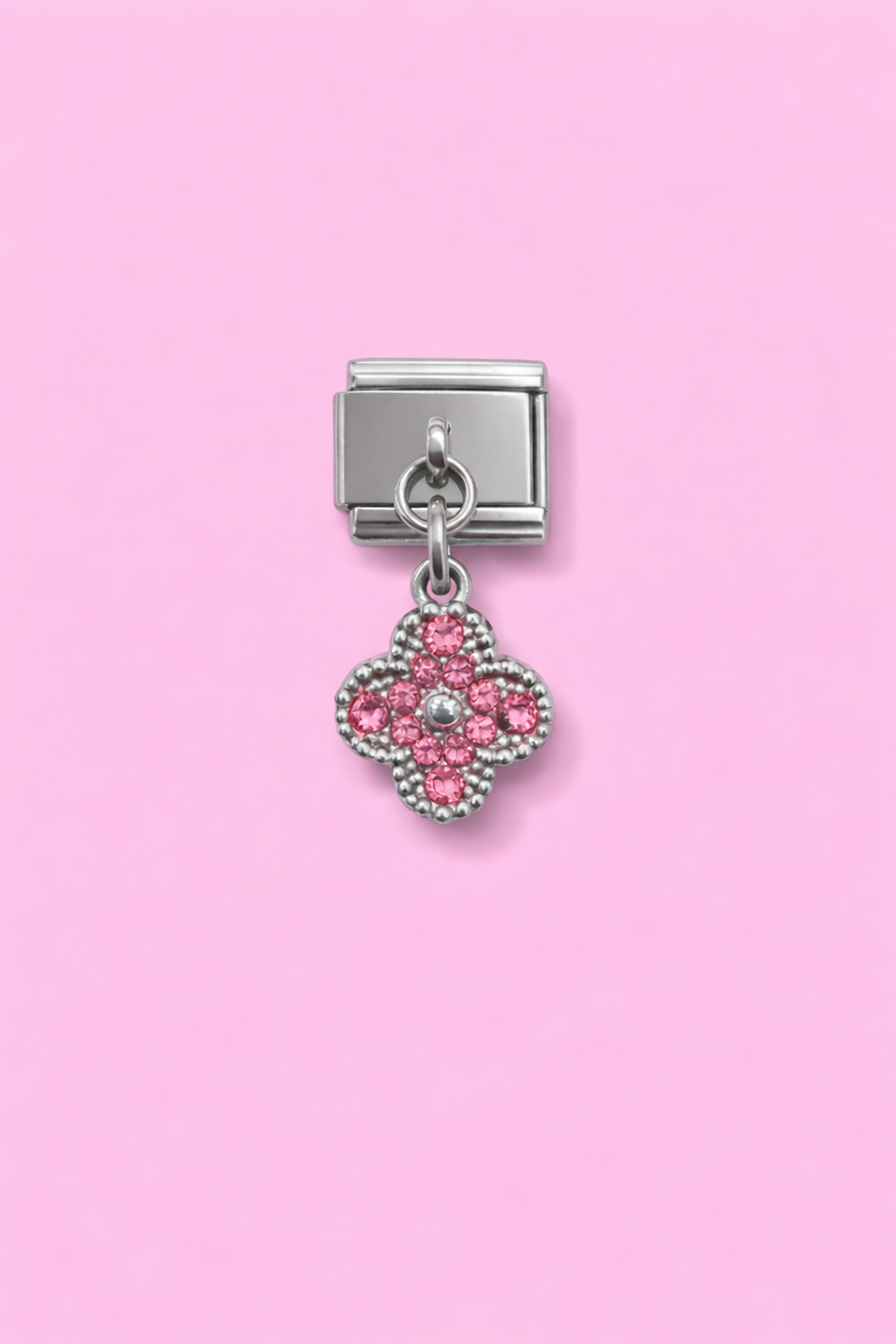 SPARKLE PINK&SILVER CROSS ITALIAN CHARM