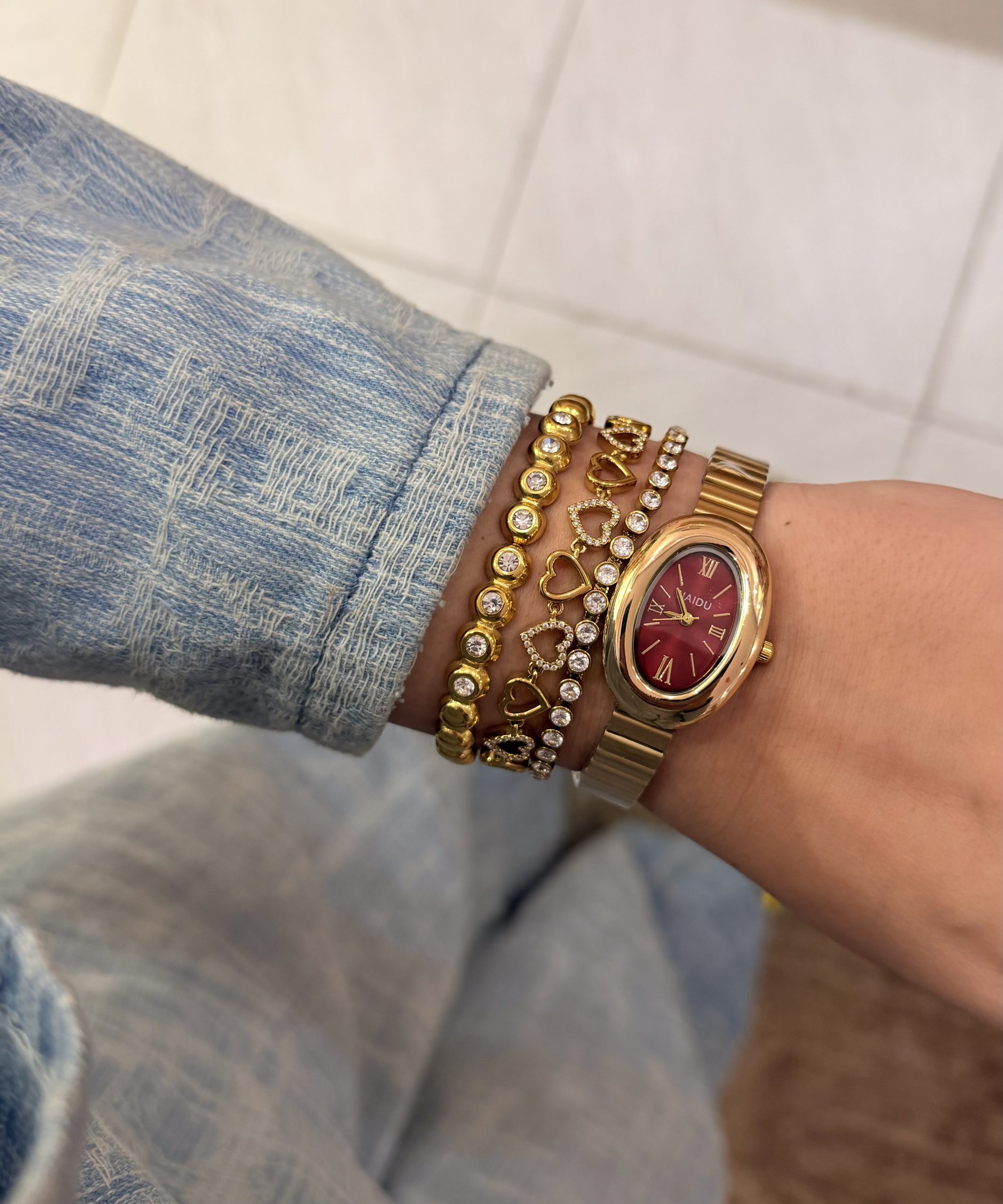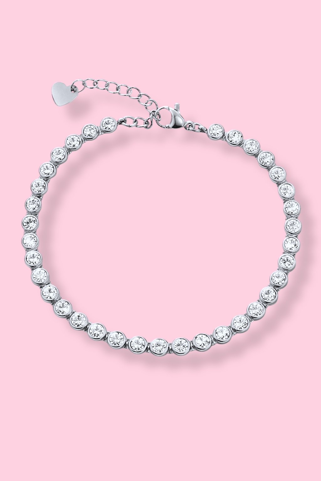 Ένα κομψό λεπτό βραχιόλι ,διακριτικό αλλά εντυπωσιακό ιδανικό για κάθε περίσταση. Το σχέδιο του κοσμείται από μικρά κυκλικά λευκά στρας συμμετρικά τοποθετημένα κατά μήκος του βραχιολιού, προσδίδοντας μια διακριτική λάμψη και εκλεπτυσμένη φινέτσα.